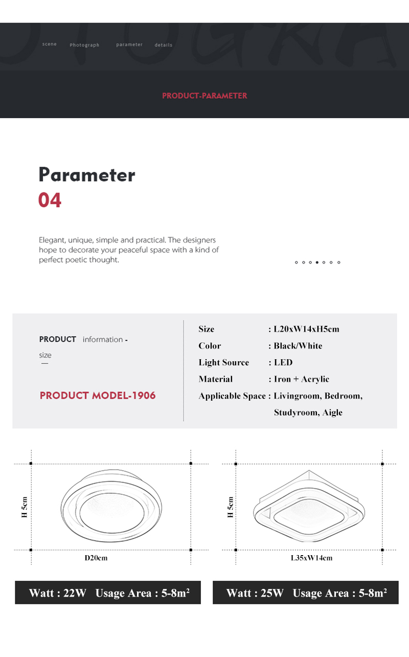 • 22W Size - D20*H5cm