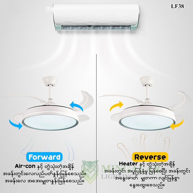 • LF38-42W ( ပန်ကာလေအား ( ၅ )ဆင့်ပါရှိ၊ Timerချိန်ယူနိင်သည် )
